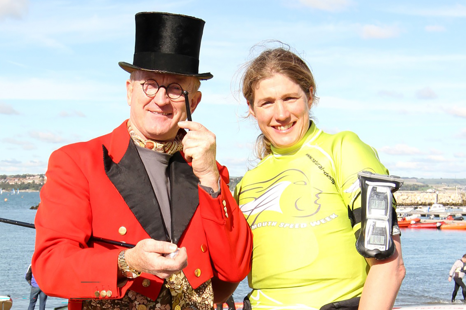 So, over the next two decades Pete was able to generate much needed support from sponsors, who contributed fantastic prizes, he brought news of how GPS timing was helping other events and helped considerably in its introduction to WSW and above all he did a fantastic job fronting the event be it at the morning briefings, in the press, in front of BBC cameras or at the prize giving – where in recent years we have also enjoyed his superb event videos. Much heartfelt thanks are due to Pete from all who have enjoyed Weymouth Speed Week over the past two decades.