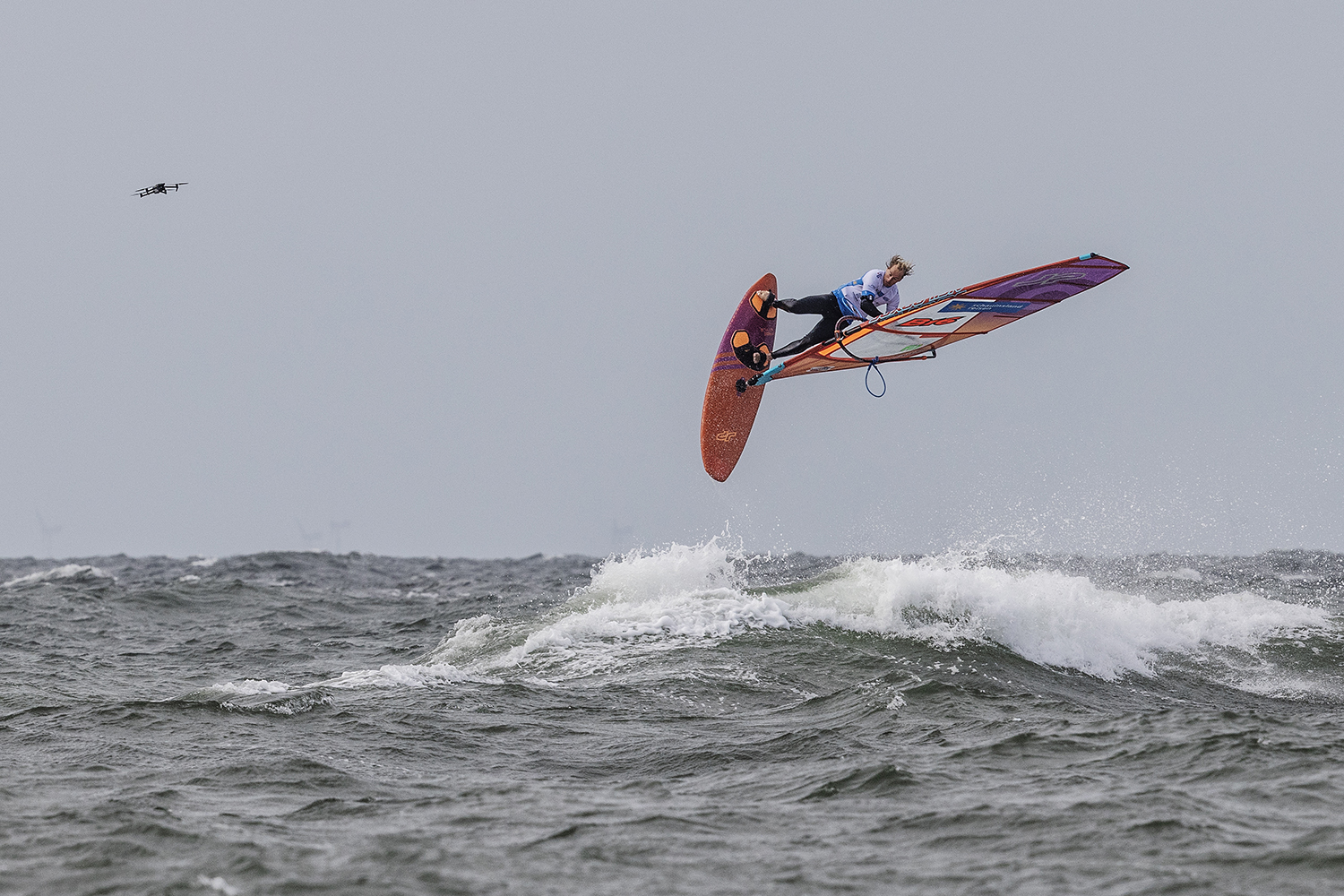 I often start my heats with the same move. In Sylt I was usually doing a double culo or an air funnel burner depending on the gust and how the swell was. Sometimes it was easier to go switch stance down the swell. I am really confident with my starboard tack sailing, so even if I mess up one attempt, I know I will be able to land three or four of the double moves coming in. We had to land our best three tricks on both tacks from seven attempts on each side and I was usually able to discard two or more high scoring moves. For me, with the conditions we had, we could have been counting four moves on each tack instead. When you sail so many heats in a row you can lose track of which moves you have already done in each heat. Sometimes, I was not even sure which moves I had performed. On the way out I was landing a lot of air chachos… I love that move and there are only two or three sailors, who can land them consistently. It is a move many sailors can perform, but to land it really clean and dry makes it a lot more risky – especially if the wind is strong – but that is the style of move that I like. I also threw in a double forward in one heat – I can land them quite easily if I have enough power, but I didn’t think the risk reward of going for more doubles was worth it when I could land less risky moves for similar scores.